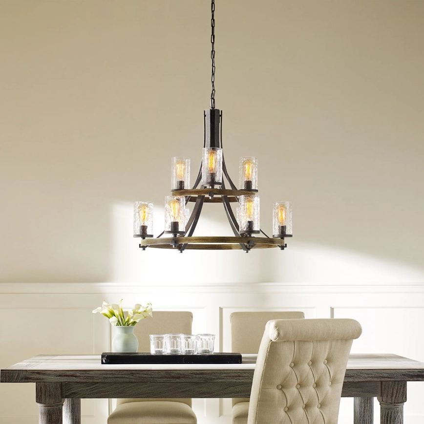 Quintiesse - Láncos csillár ANGELO 9xE27/60W/230V tölgy dekor