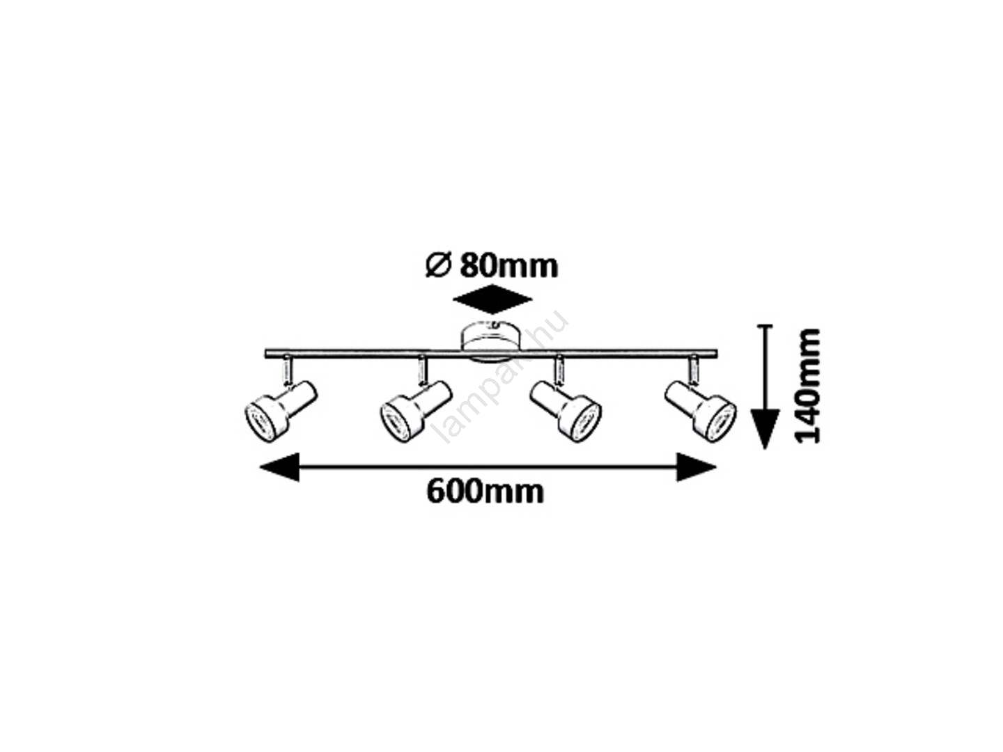 A Konrad négyszögletes spotlámpája fém anyagból készült, hagyományos stílusával szinte bármilyen otthoni berendezés praktikus kiegészítője lesz. Különösen ajánljuk nappalijába, hálószobájába vagy tágasabb előszobájába. A fekete lámpatestet egy kis, kerek, fekete dísz talp egészíti ki. A lámpafejek egyenletes távolságra helyezkednek el, és egy hosszú fém rúdon vannak rögzítve az alaphoz. A mozgatható lámpafejeknek köszönhetően a fényt igény szerint irányíthatja. A Konrad négy darab, legfeljebb 50 W teljesítményű, GU10 típusú izzóval használható. Ha a spotlámpát hálószobájába szereli, érdemes meleg fehér fényforrást választani, amely kellemes és otthonos hangulatot teremt. A Konrad négyszögletes spotlámpa méretei: szélesség 600 mm, magasság 80 mm, dekoratív talp átmérője 80 mm, falhoz való távolság 140 mm. Ez a modell fényforrások nélkül kerül forgalomba.