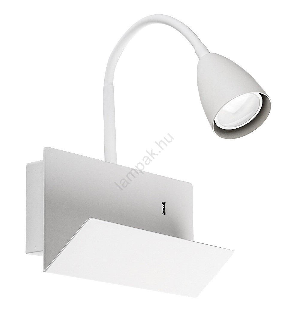 • Gyakorlati fali lámpa polccal és USB porttal.