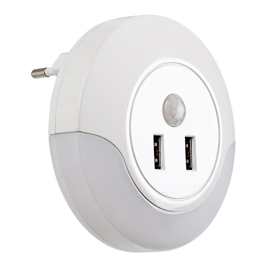 Rabalux - LED éjszakai lámpa aljzatba, érzékelővel, 2xUSB LED/13,9W/230V 3000K