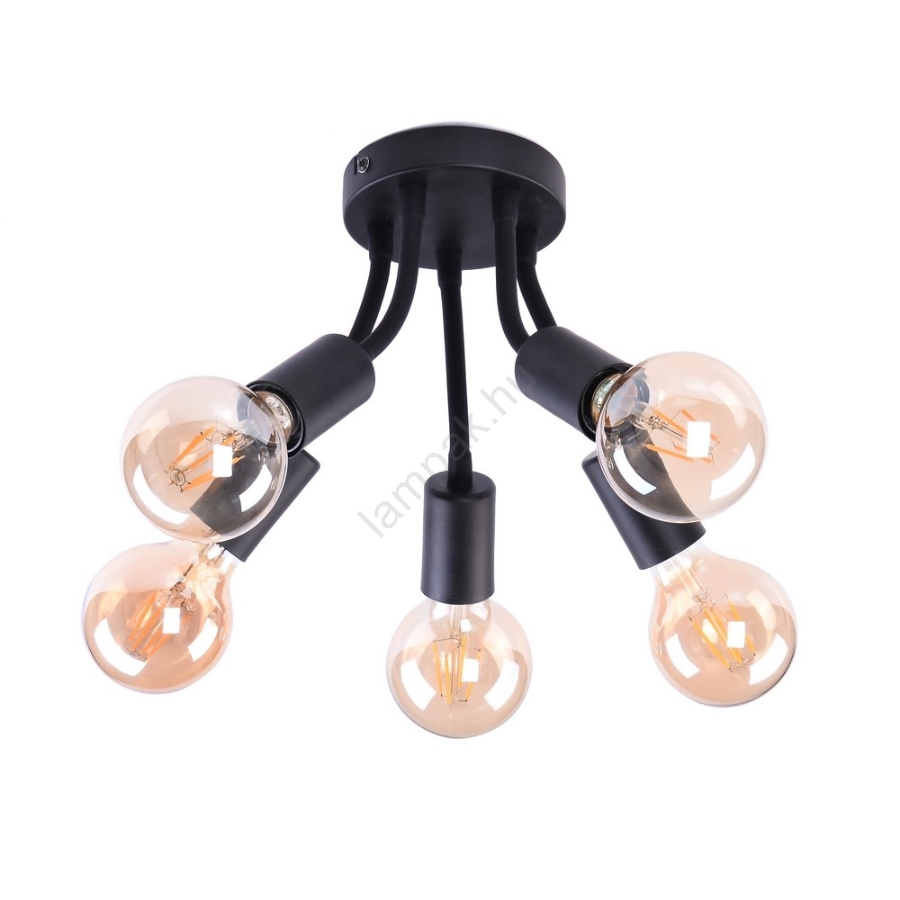 Almus mennyezeti lámpa öt izzóval, ipari stílusban, fém anyagból készült, egyszerű, mégis figyelemfelkeltő dizájnnal, amely stílusos kiegészítője lesz otthonának. A fekete lámpatestet egy kis, fekete díszítő talp egészíti ki. Az öt különböző irányba álló lámpafejnek köszönhetően az Almus egyenletes megvilágítást biztosít a helyiségben. A mennyezeti lámpa öt darab, maximum 60 W teljesítményű, E27 foglalatú izzóval használható. Ízlés szerint meleg vagy természetes fehér fényű izzókkal is alkalmazható. Az Almus átmérője 350 mm, a mennyezettől való távolsága 165 mm. Elsősorban nappalijában javasoljuk használni ezt a modellt. A lámpa izzók nélkül kerül forgalomba.