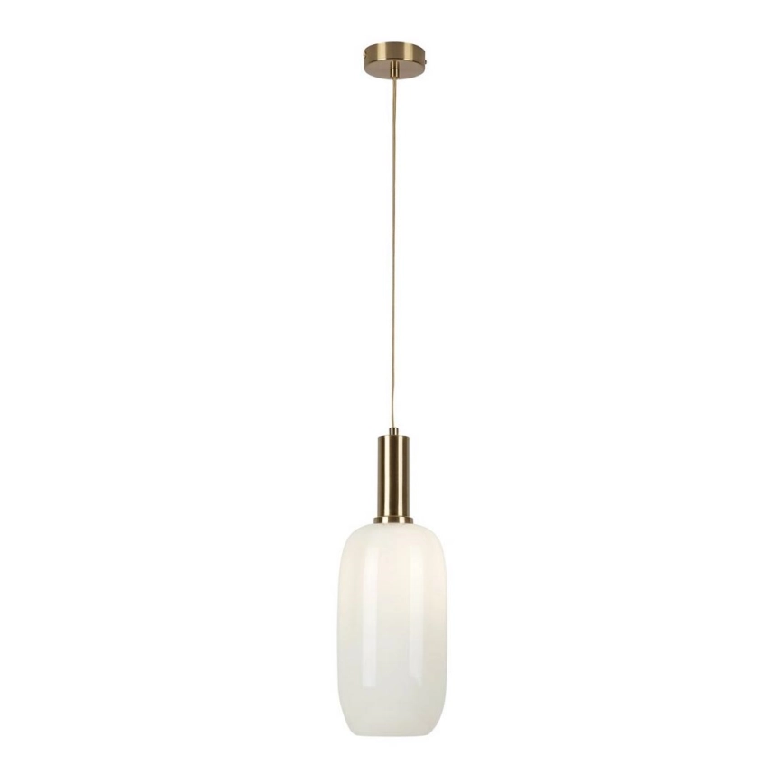 A Sinopia klasszikus stílusú függeszték visszafogott és elegáns kiegészítője lesz nappalija vagy hálószobája berendezésének. Az aranyszínű lámpatest opálüveg búrával van ellátva, és a mennyezetre egy kis, kerek díszítő talppal rögzíthető. A palack formájú, hosszúkás búra textilkábellel kapcsolódik a dekoratív alaphoz. Ez a függeszték egy darab, legfeljebb 60W teljesítményű izzóval használható. A foglalat típusa E27. Ha intim, meghitt hangulatot szeretne teremteni a helyiségben, válasszon ehhez a lámpához meleg fehér fényforrást. A Sinopia függeszték méretei a következők: a búra átmérője 145 mm, magassága 285 mm, a mennyezettől való távolság 1500 mm, a szerelési átmérő 90 mm. Ez a modell fényforrás nélkül kerül forgalomba.