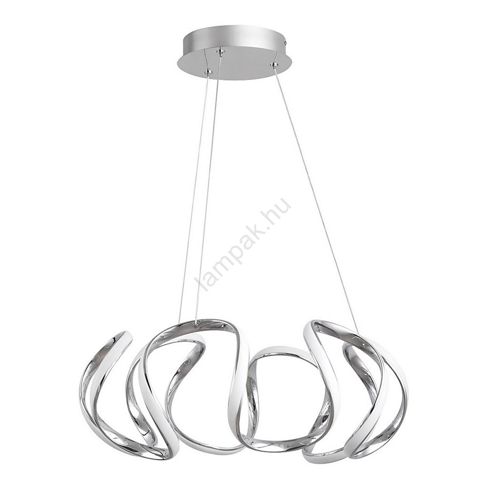 A Palmira függesztett lámpa a modern nappalija vagy étkezője központi eleme lesz. A króm fém és műanyag lámpa egyedi, légies formáival biztosan felkelti a figyelmet. Beépített, energiatakarékos LED fényforrása 38 W fogyasztású, fényereje 2500 lumen, élettartama pedig 20 000 óra. A fényforrás színhőmérséklete 3000 K, így meleg fehér fényével világítja meg környezetét. A lámpa kellemes, intim hangulatot teremt a helyiségben. A Palmira lámpa átmérője, amelyet egy kerek dekoratív talp egészít ki, 560 mm, a mennyezettől mért távolsága pedig 1500 mm. Ez a lenyűgöző függesztett lámpa 5 év garanciával érkezik.