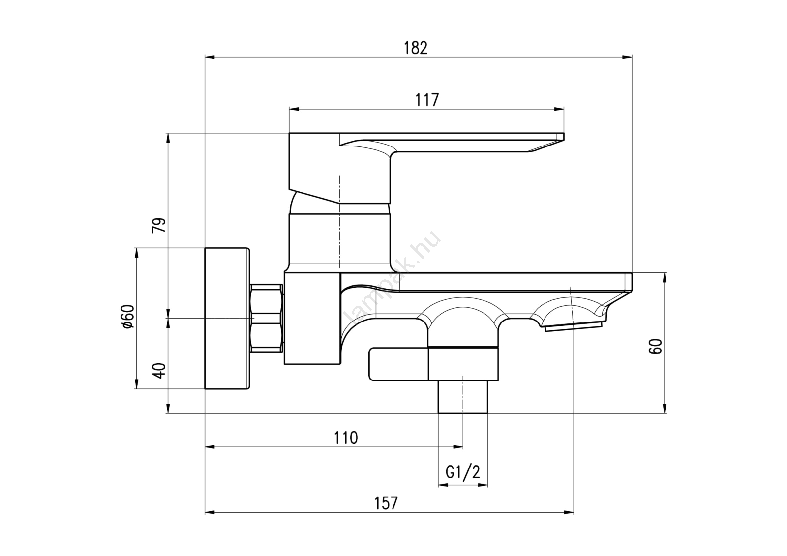 • Falra szerelhető fürdőkádcsaptelep.