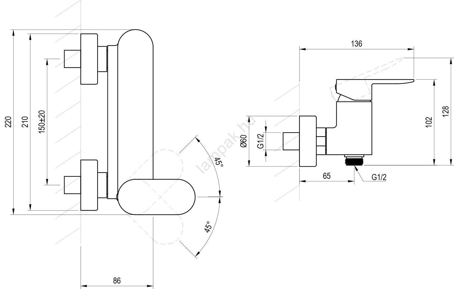 • A csaptelep bekötési távolsága 150 mm, ami megfelel a szabványos csőhálózatoknak.