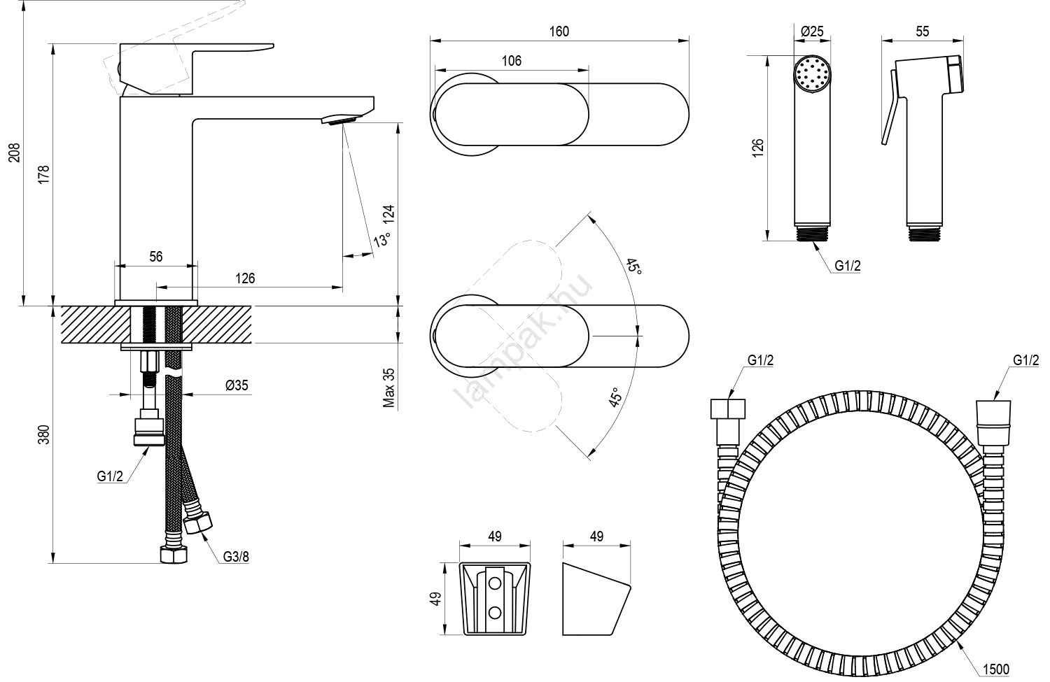 • A csaptelep része egy kézi bidézuhany visszacsapó szeleppel, amely kényelmes személyes higiéniát tesz lehetővé külön bidé telepítése nélkül.