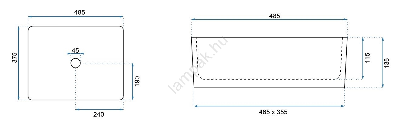 • Modern, elegáns mosdó túlfolyó nélkül.