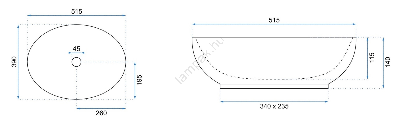 • Modern és elegáns, túlfolyó nélküli mosdó.