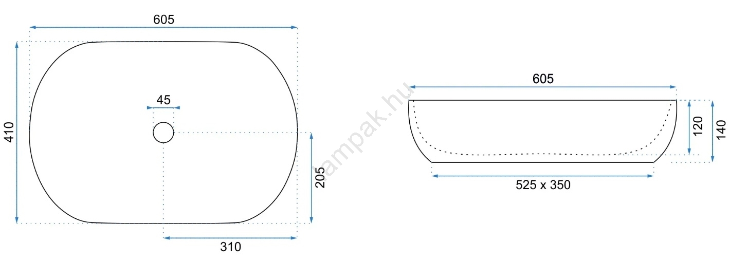 • Modern, elegáns mosdó túlfolyó nélkül.