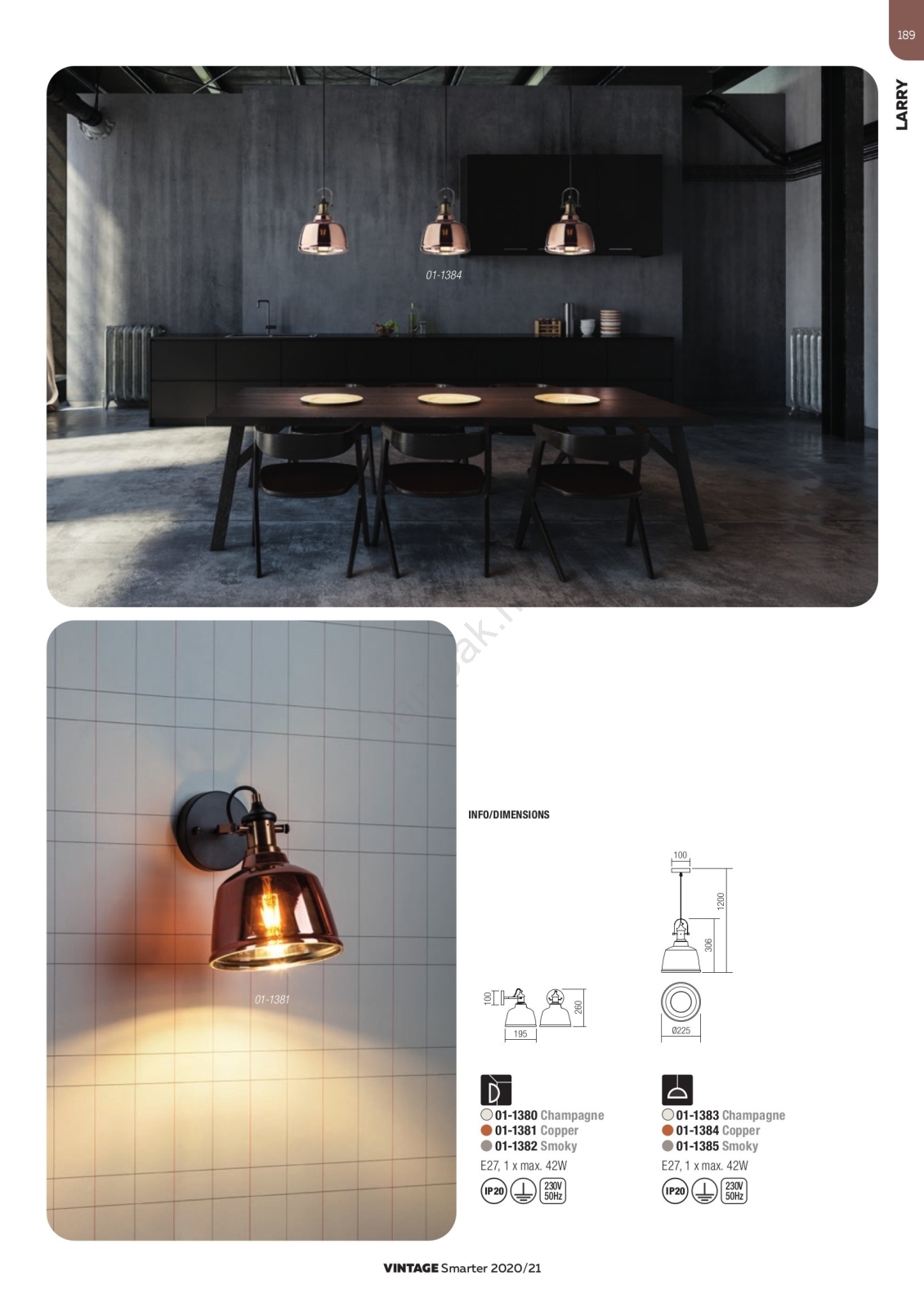 A Redo 01-1382 - Fali lámpa LARRY 1xE27/42W/230V a szép és funkcionális dizájn jellemzi.  A világításhoz egy E27 aljzattal ellátott izzó alkalmas. Itt további izzókat vásárolhat kedvező áron. Érdekes kiegészítője lesz otthonának.
