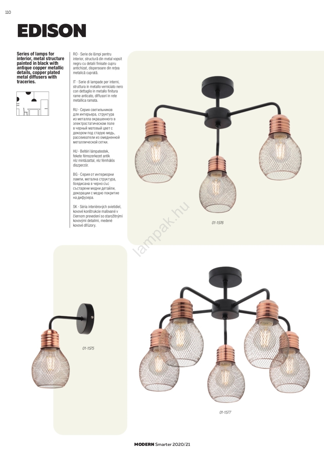 A Redo 01-1575 - Fali lámpa EDISON 1xE27/42W/230V a szép és funkcionális dizájn jellemzi.  A világításhoz egy E27 aljzattal ellátott izzó alkalmas. Itt további izzókat vásárolhat kedvező áron. Érdekes kiegészítője lesz otthonának.