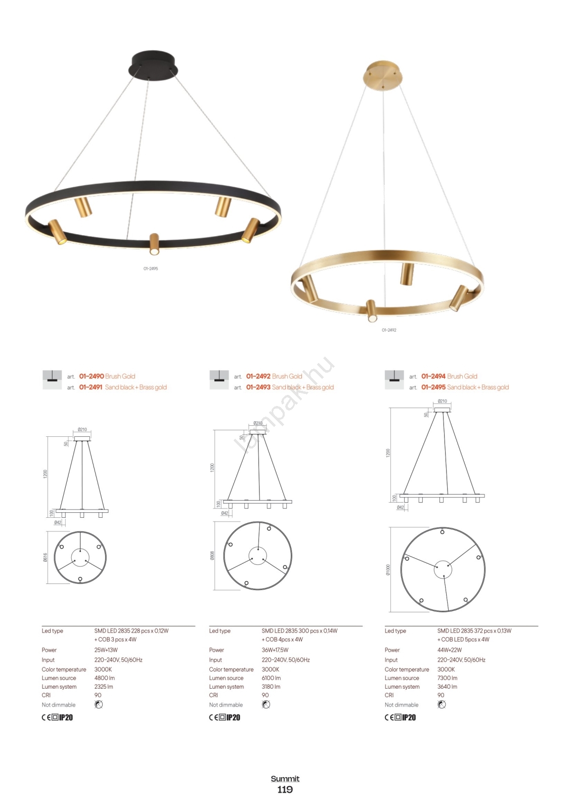 Redo 01-2490 - LED Csillár zsinóron SUMMIT LED/38W/230V CRI 90 átm. 61,6 cm arany