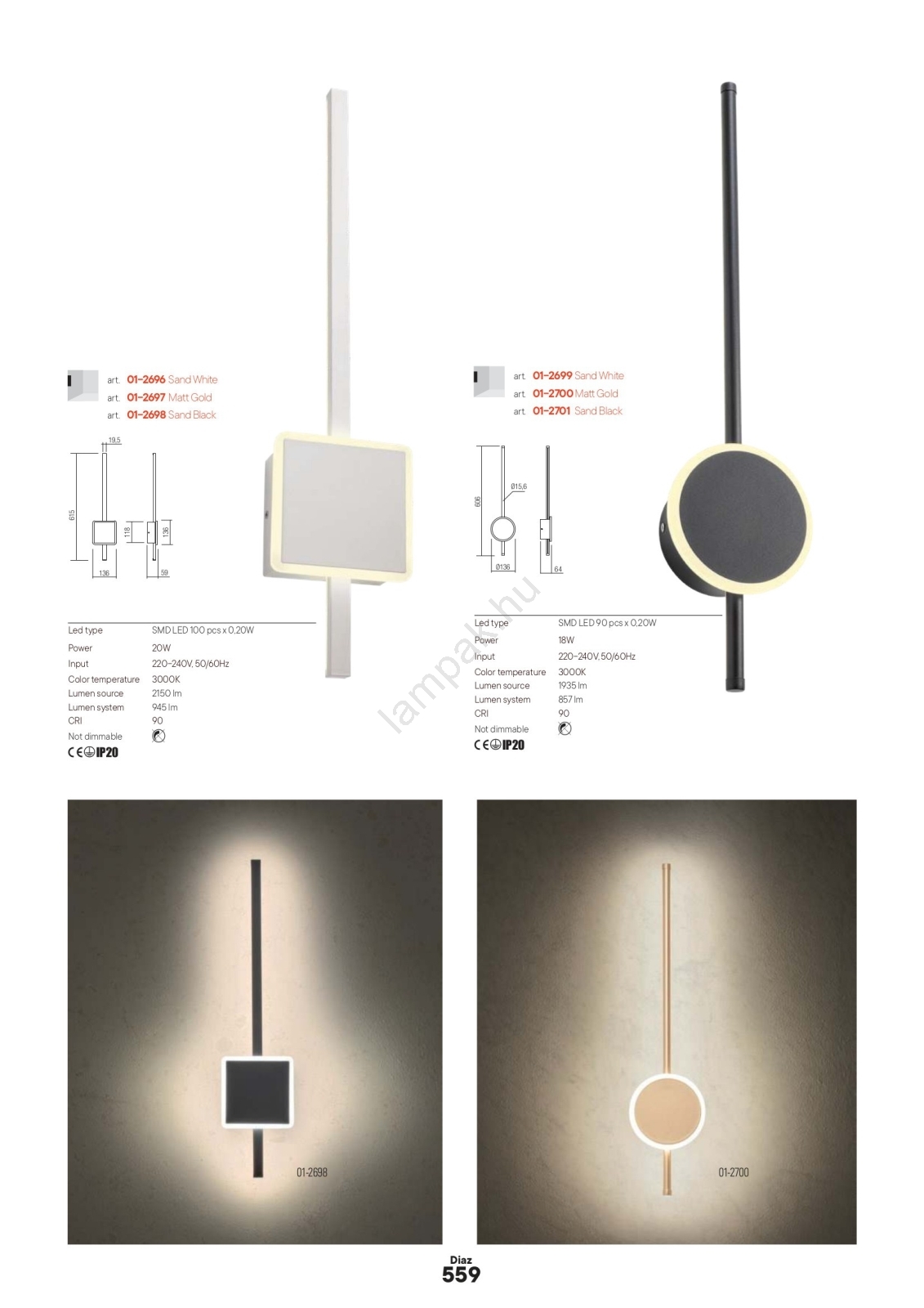 • Redo 01-2696 - LED fali lámpatest DIAZ LED/20W/230V CRI 90 fehér