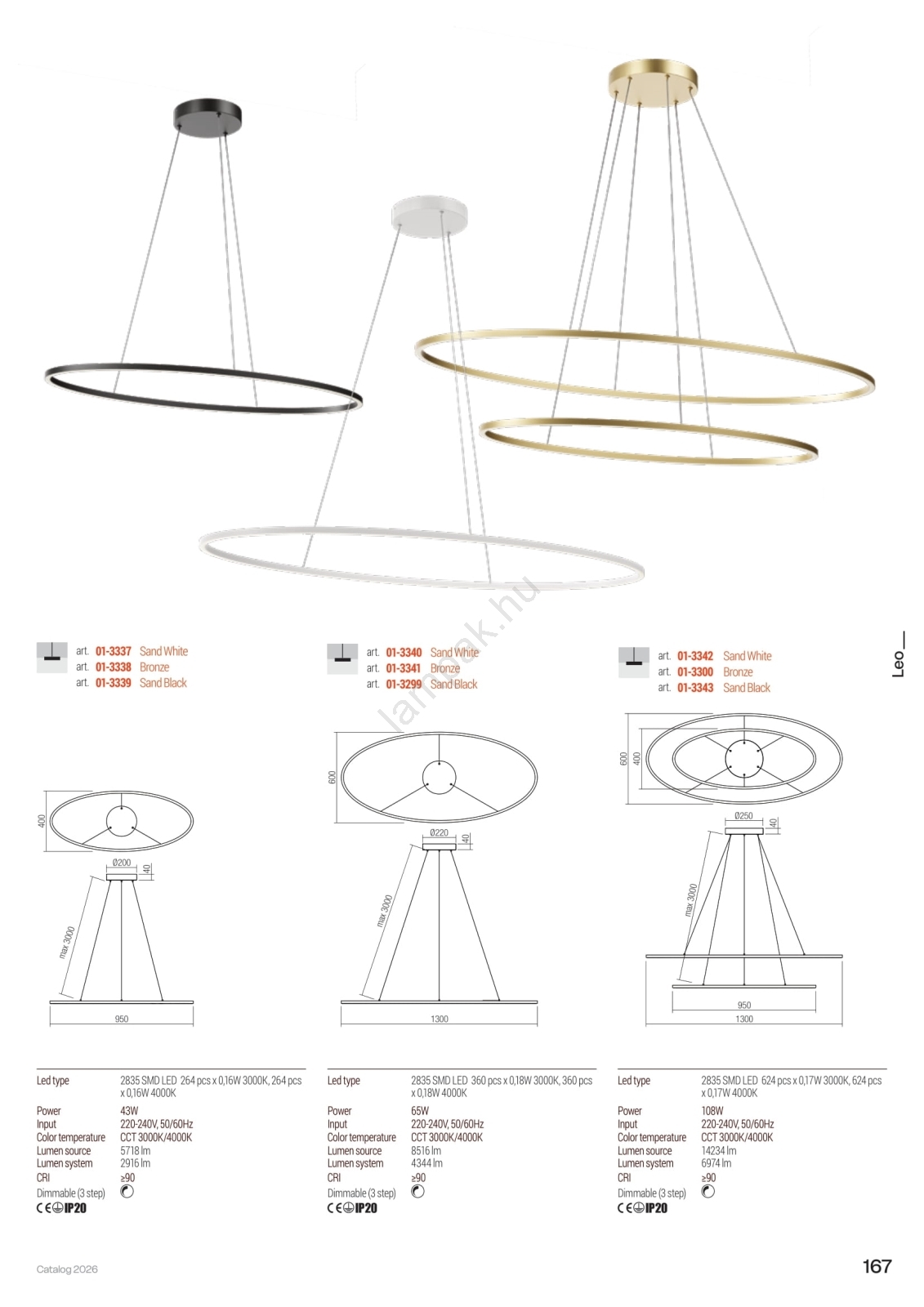 • Redo 01-3337 - Fényerőszabályozható kábelre függesztett csillár LEO LED/48W/230V 3000/4000K CRI 90 40x95 cm fehér