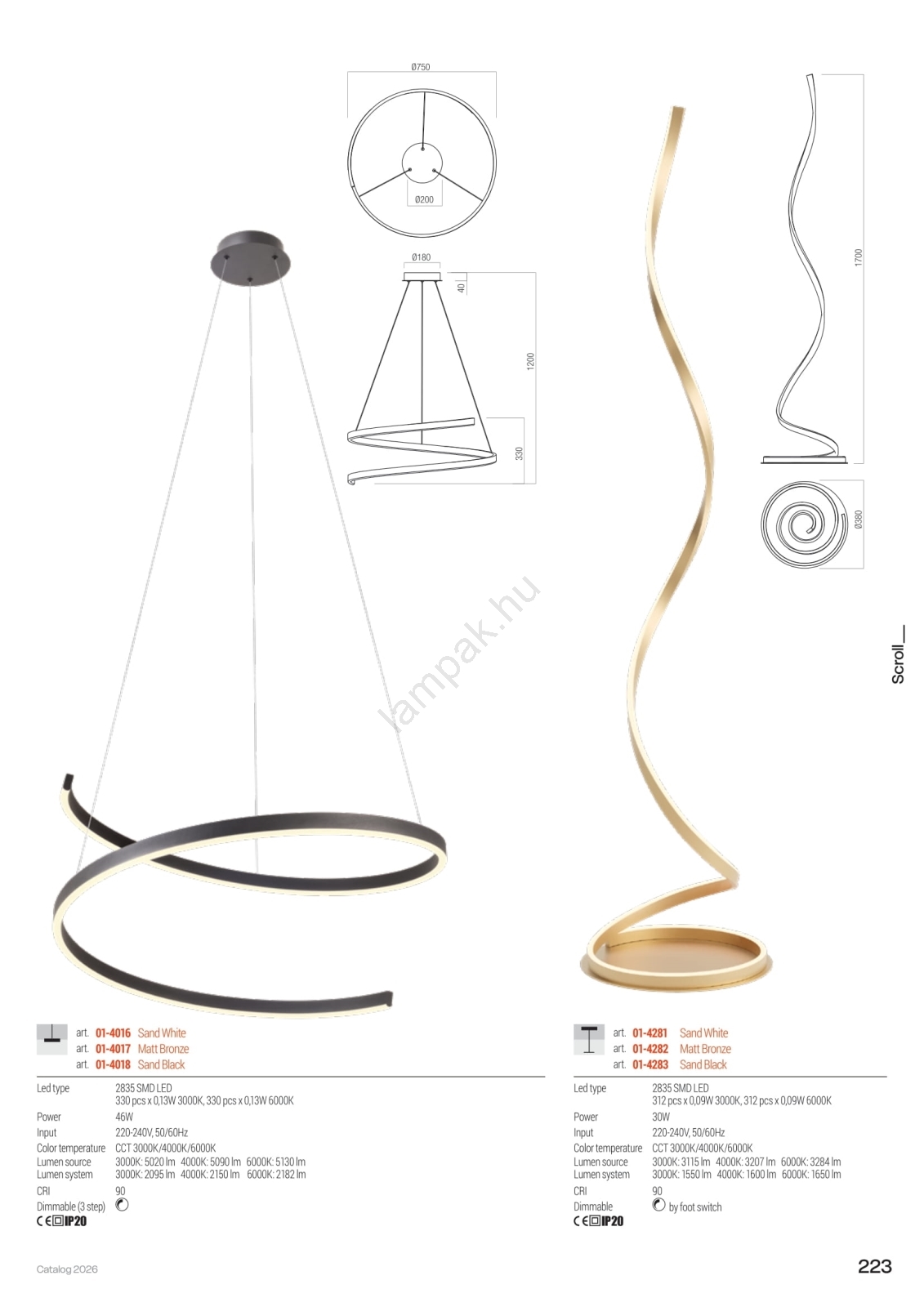 • Redo 01-4281 - LED fényerőszabályozható állólámpa SCROLL LED/30W/230V 3000K/4000K/6000K CRI 90 fehér