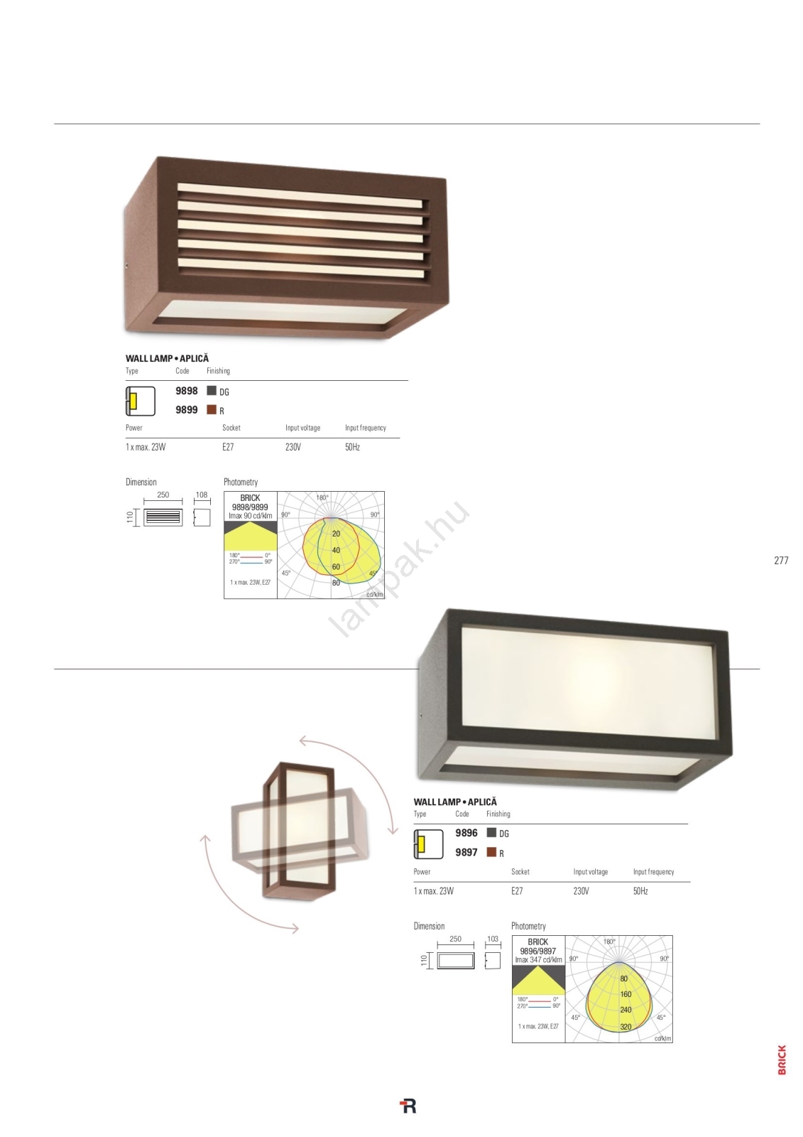 A Redo 9899 - Kültéri fali lámpa BRICK 1xE27/23W/230V IP54 barna a szép és funkcionális dizájn jellemzi.  A világításhoz egy E27 aljzattal ellátott izzó alkalmas. Itt további izzókat vásárolhat kedvező áron. Érdekes kiegészítője lesz otthonának.