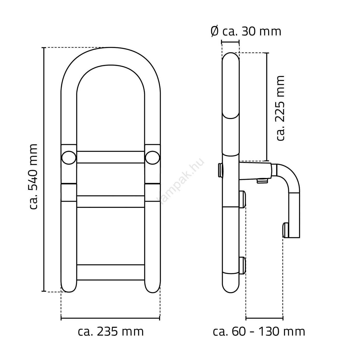 • Állítható távolsága 60–130 mm között.
