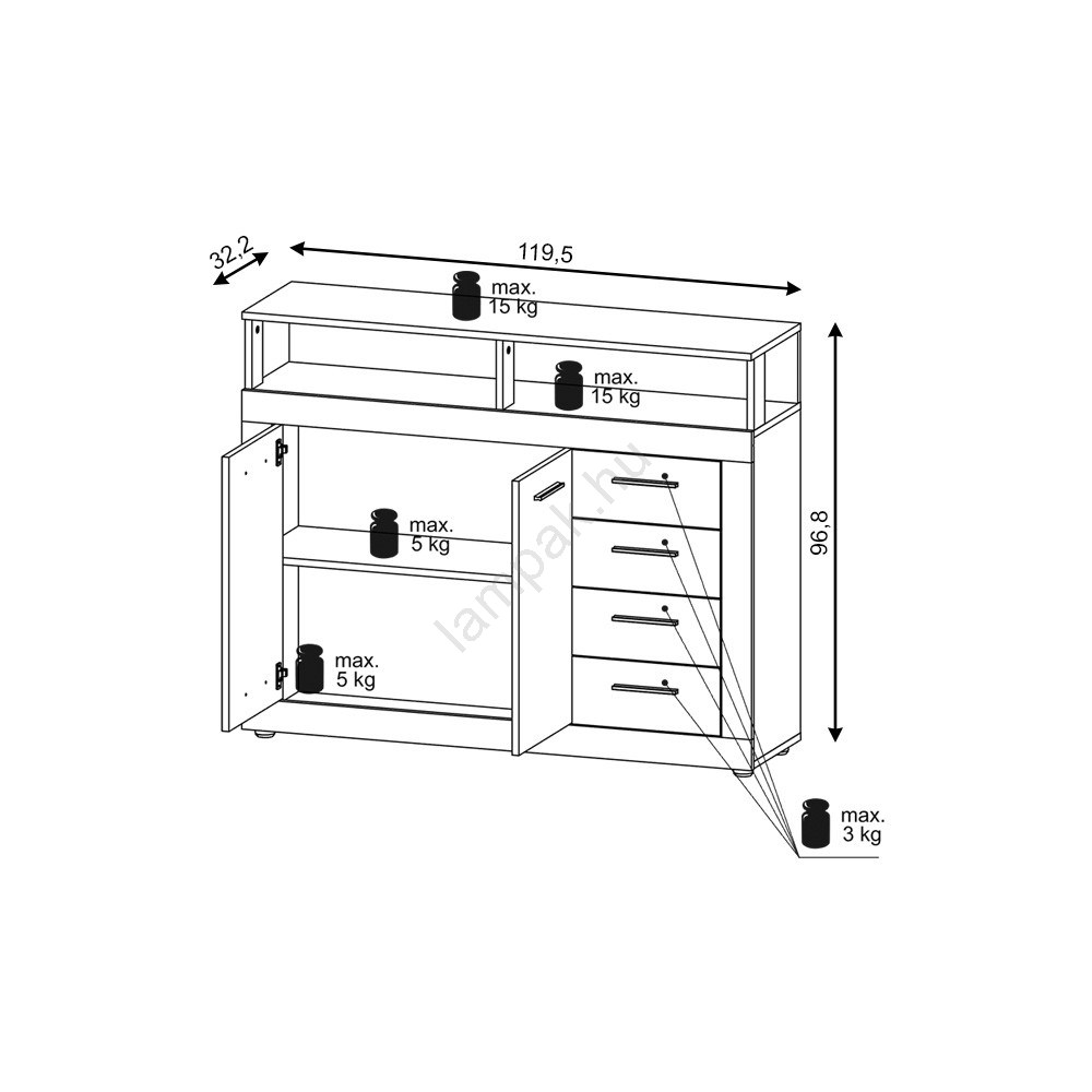 • A felső lap elegendően tágas díszek, elektronikai eszközök vagy egyéb szükségletek elhelyezésére.