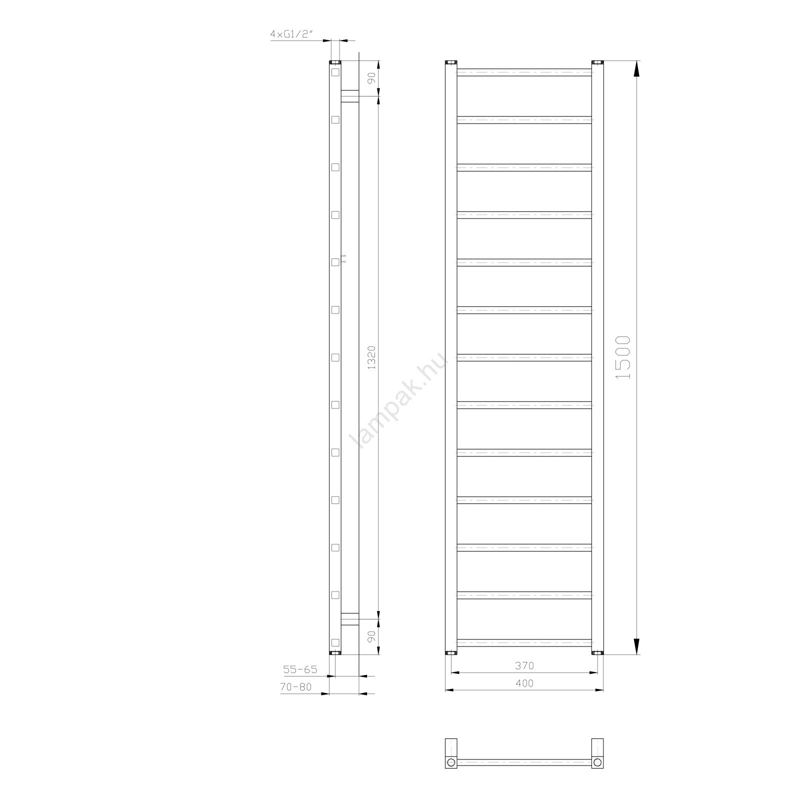 Sapho - fürdőszobai radiátor METRO LIGHT 150x40 cm fehér