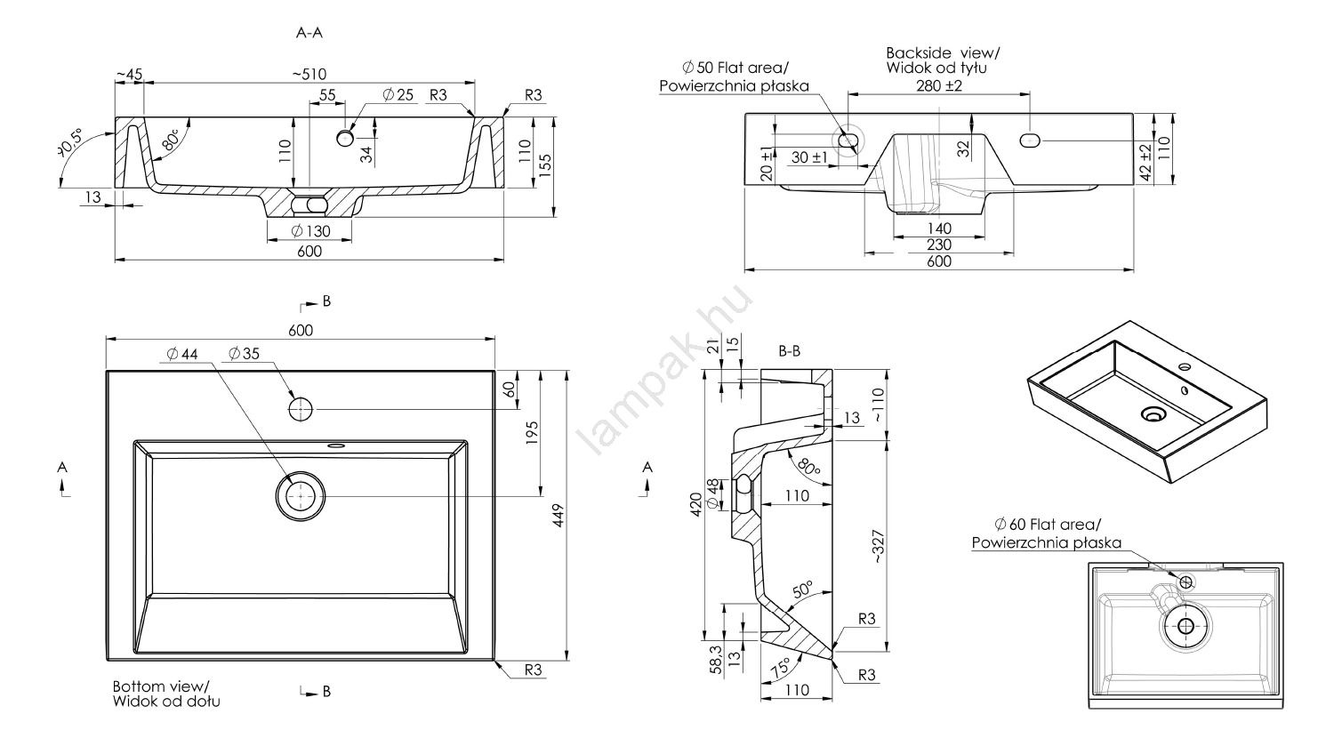 Fürdőszoba, Márkák, Mosdók és mosogatók, Pultos mosdókagyló, Sapho