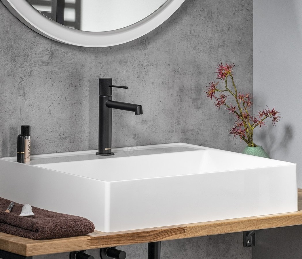 • Az elegáns, matt fekete felület bármely fürdőszoba enteriőrjéhez illik.