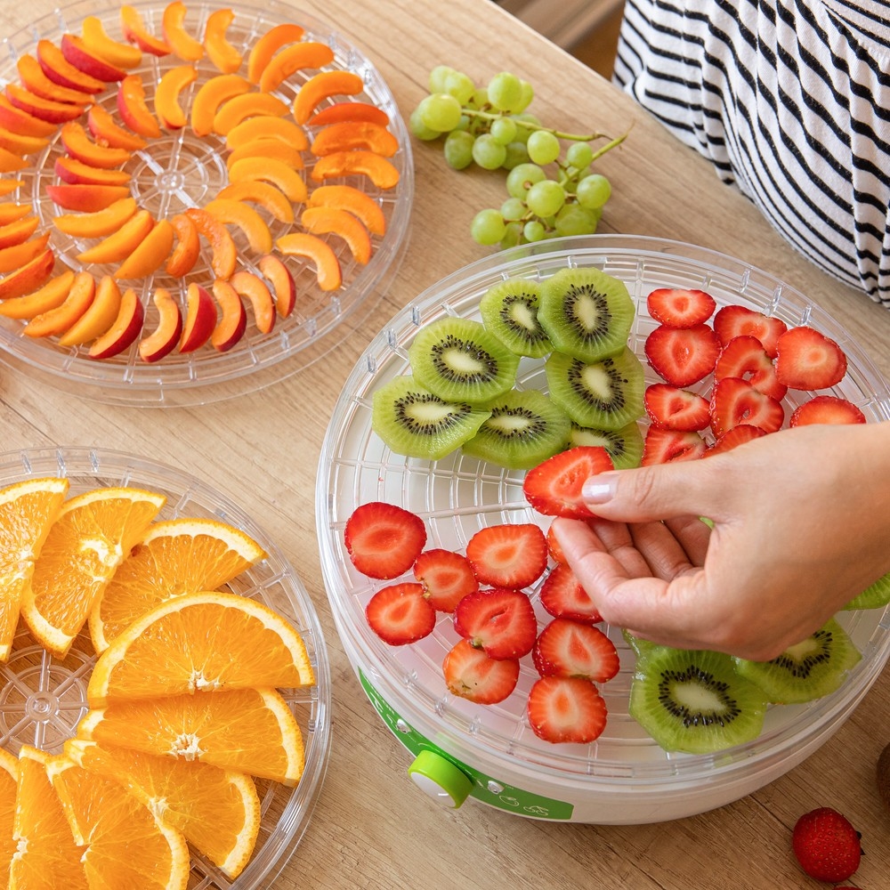 • A átlátszó rácsok és a szárító fedél lehetővé teszik a szárított termékek állapotának azonnali vizuális ellenőrzését.