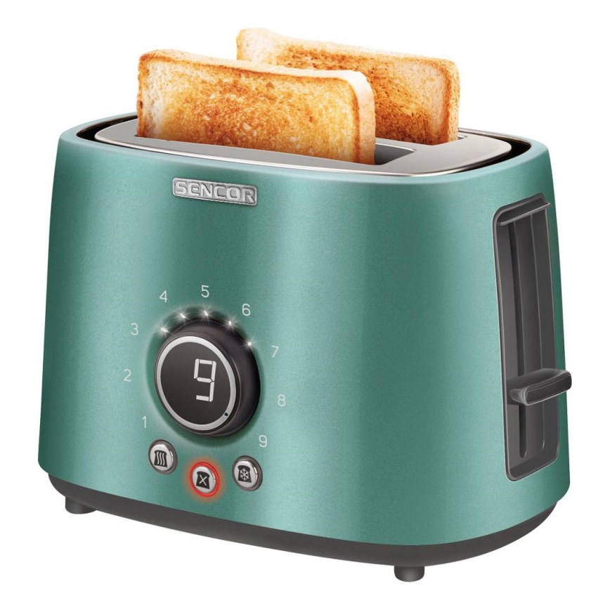 Sencor - Kétnyílásos kenyérpirító melegítőrácssal, 1000W/230V, mentazöld