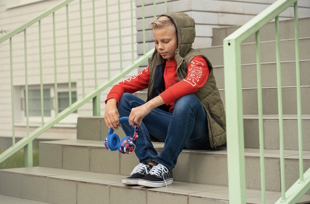 Sencor - Vezeték nélküli fejhallgató mikrofonnal 3,7V/400 mAh kék/piros