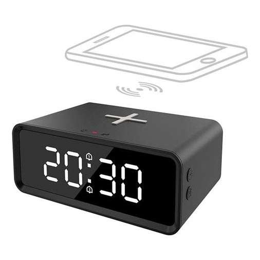 Fekete digitális óra Qi vezeték nélküli töltővel 230V/CR2032
