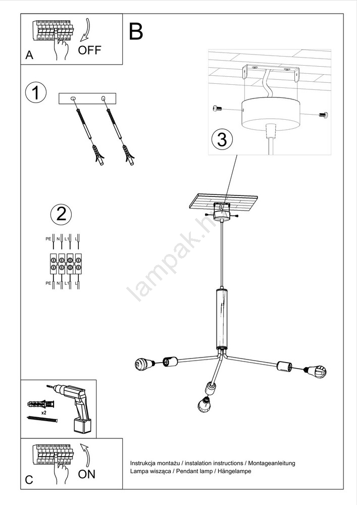 A Csillár zsinóron DUOMO 3D 3xE27/60W/230V fekete a szép és funkcionális dizájn jellemzi.  A világításhoz egy E27 aljzattal ellátott izzó alkalmas. Itt további izzókat vásárolhat kedvező áron. Érdekes kiegészítője lesz otthonának.