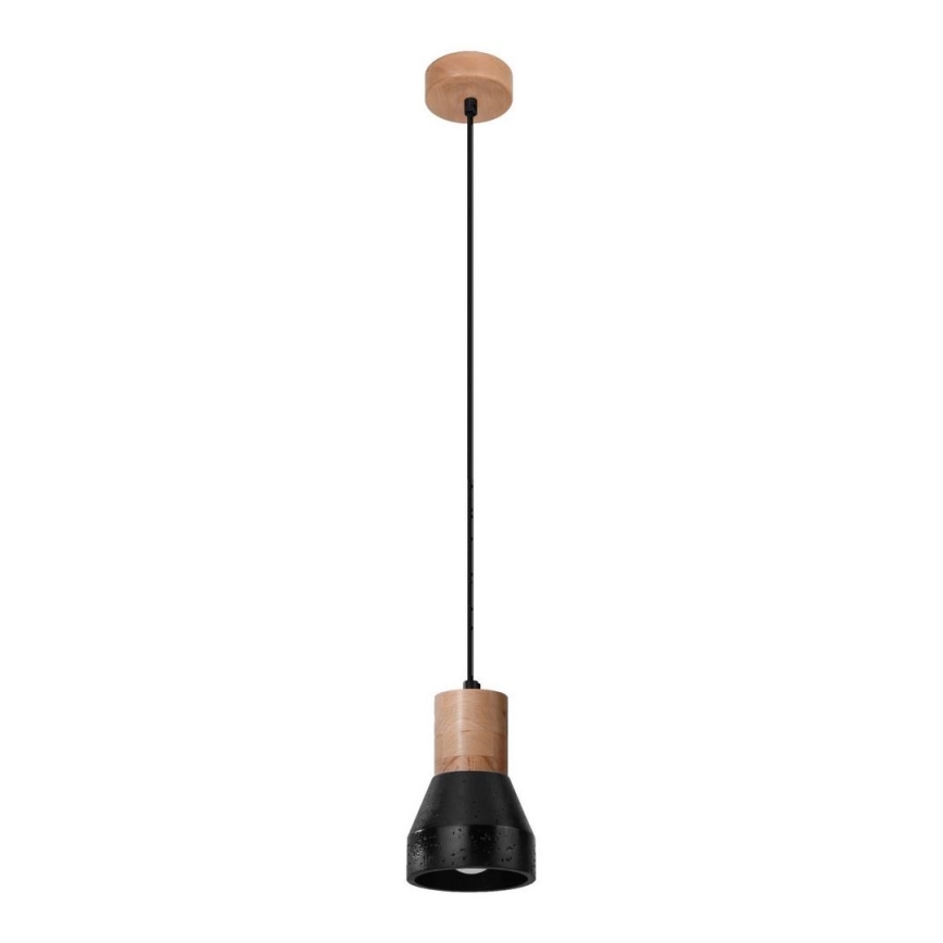Csillár zsinóron QUBIC 1xE27/60W/230V beton/Nyírfa/bükkfa/fekete