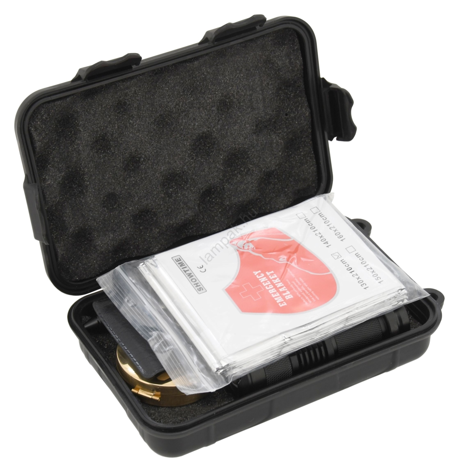 • A készlet egy 6,5 cm pengehosszúságú zárókésből, egy többfunkciós kártyából, egy sípból, egy forgó skálával ellátott iránytűből, egy bivak (izotermikus) fóliából, egy nagy tűzkőből a tűzgyújtáshoz, egy LED-es világítással ellátott függőlámpából, egy teljesen fémből készült, szúróhegyű tollból és egy AA elemmel (nem tartozék) működő LED-es zseblámpából áll, amelynek fényereje kúp alakban állítható.