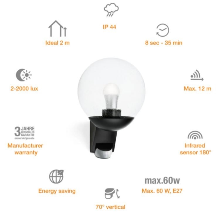 • STEINEL 005535-Kültéri fali lámpa érzékelővel L585S 1xE27/60W fekete IP44