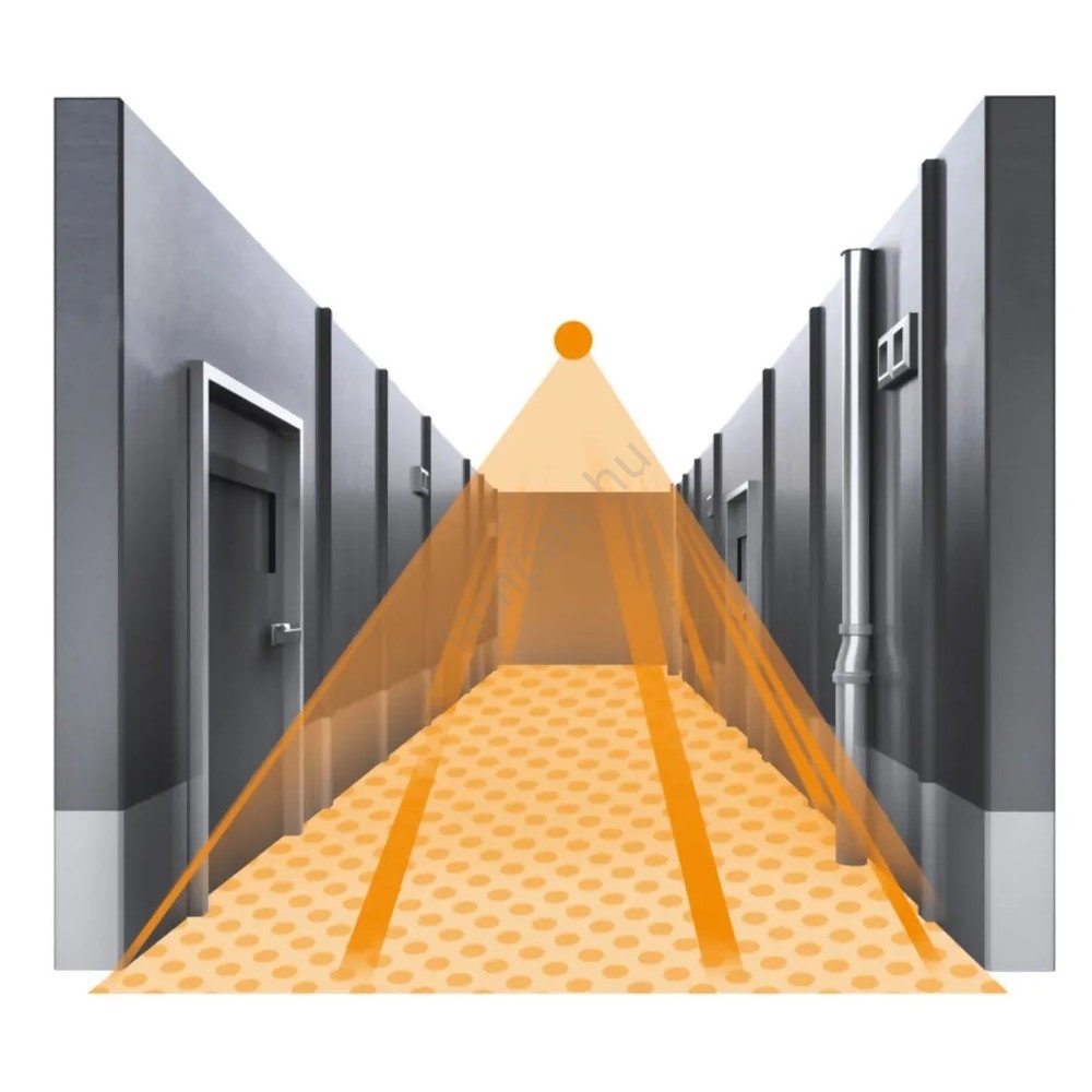 • Az érzékelő hatótávolsága és teljes lefedettsége(138 m²) ideális hosszú folyosók és folyosók megfigyelésére.