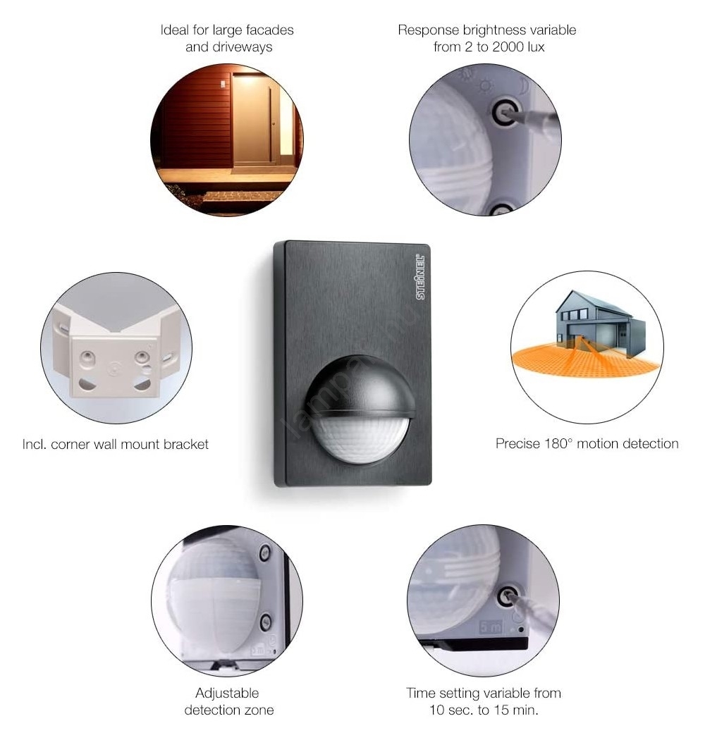 STEINEL 603113 - Kültéri mozgásérzékelő IS 180-2 fekete IP54
