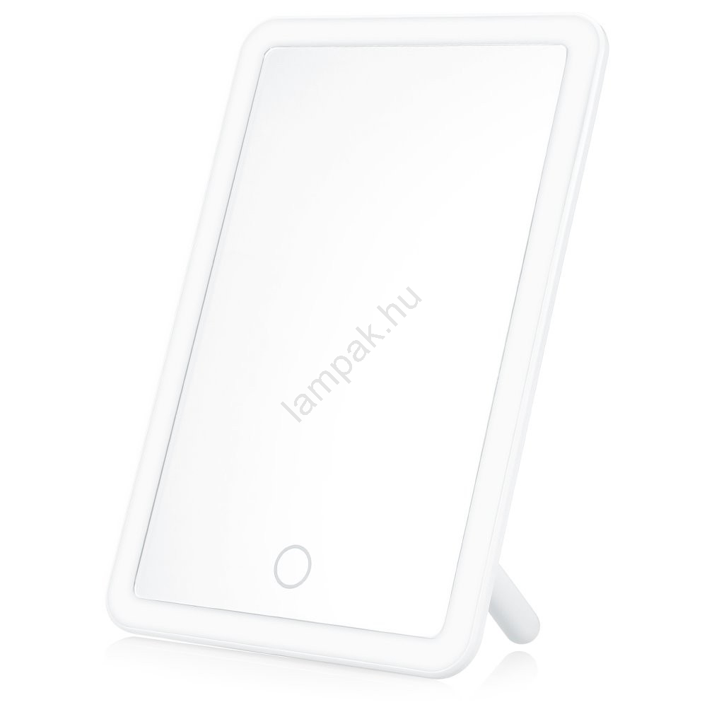 • LED világítással ellátott, állítható fényerősségű téglalap alakú keretes kozmetikai tükör.