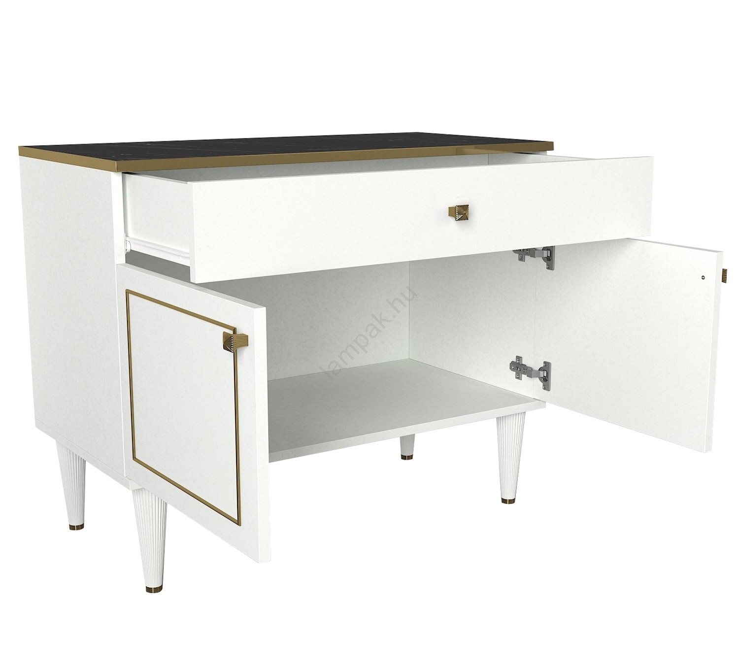 • A komód egy tágas fiókot és egy nagy tárolórekeszt tartalmaz.