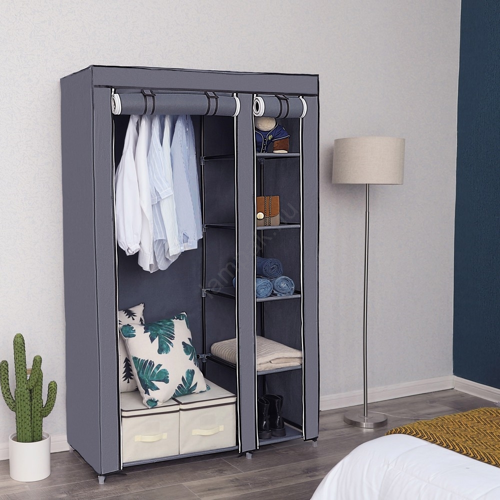 Tároló textilszekrény polcokkal és akasztórúddal MATIS 110x175 cm szürke