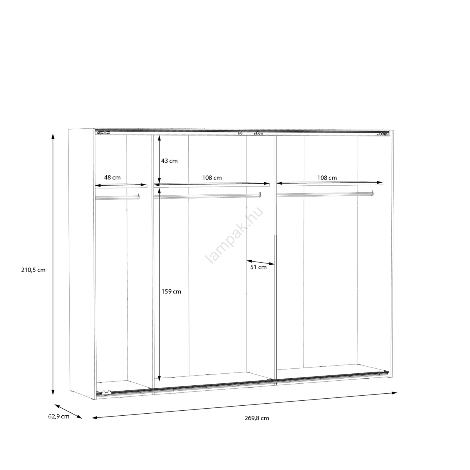 • A szekrény ruhaakasztó rudakkal, polcokkal és nagy tárolóhellyel rendelkezik ruhái, táskái és szezonális holmijai számára.