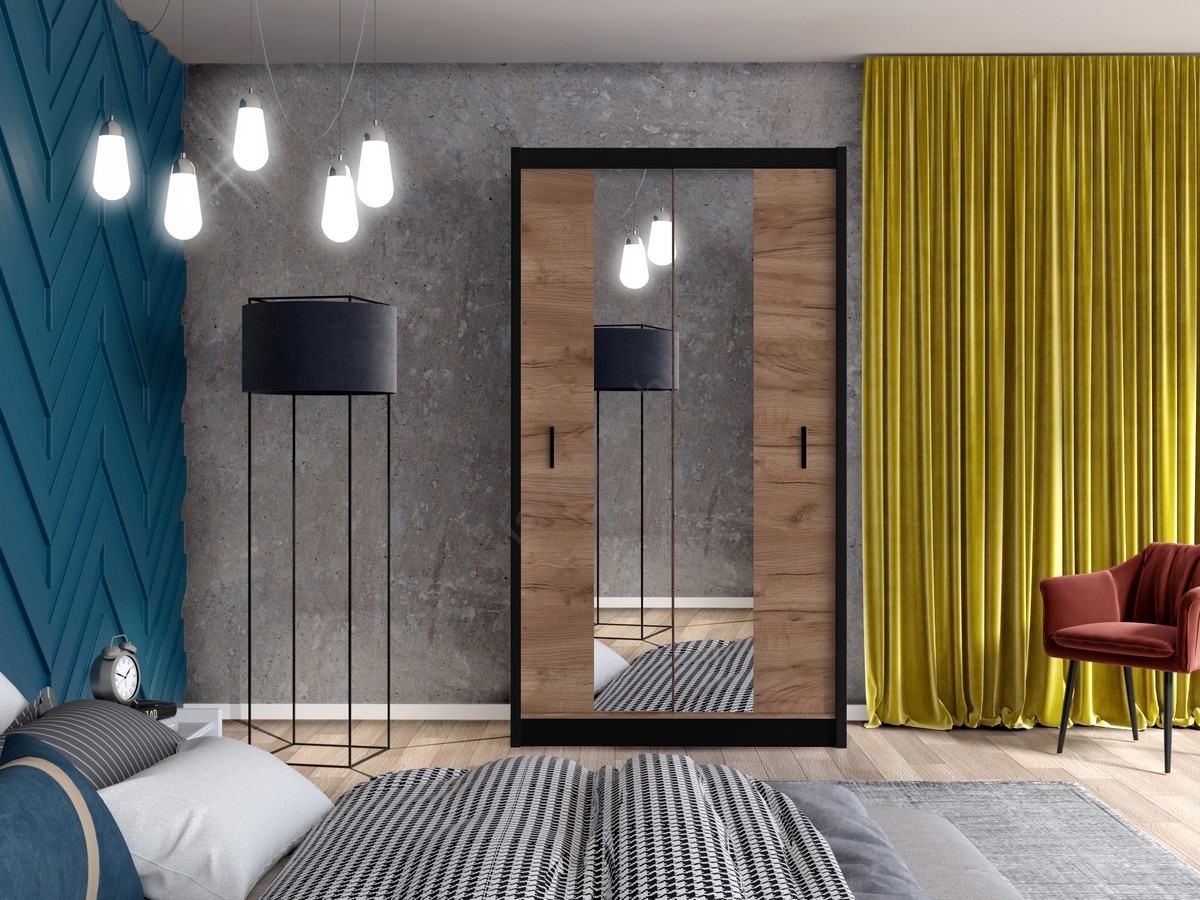 Gardróbszekrény tükrövel MIRO 120x215 cm craft tölgy/fekete