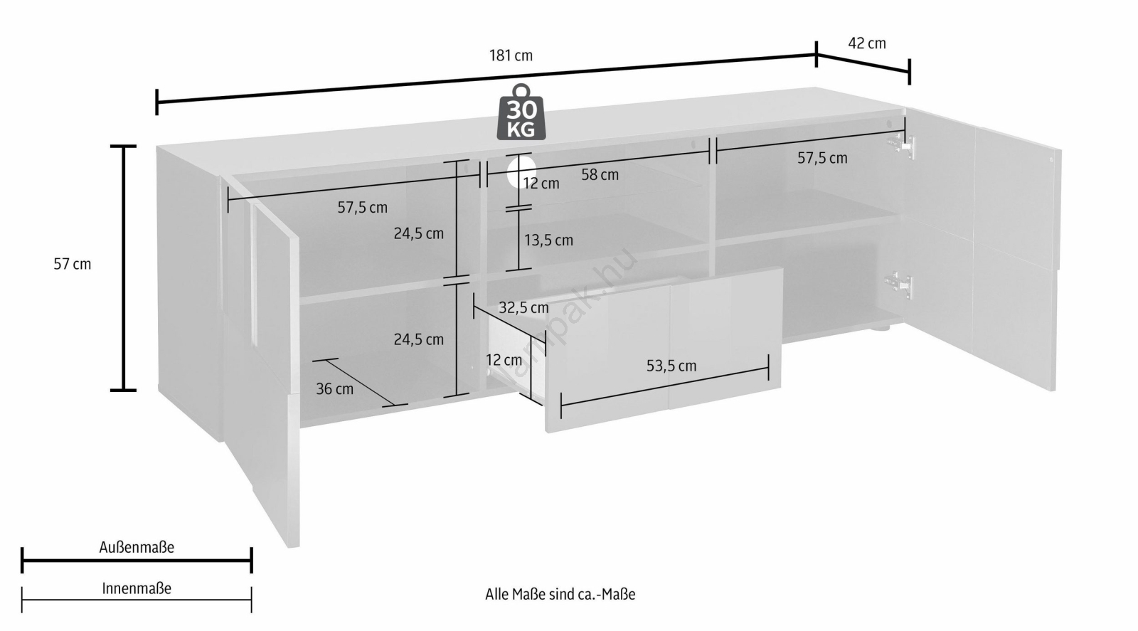 • 2. doboz: 13,1 x 73,5 x 44,8 cm (20 kg).