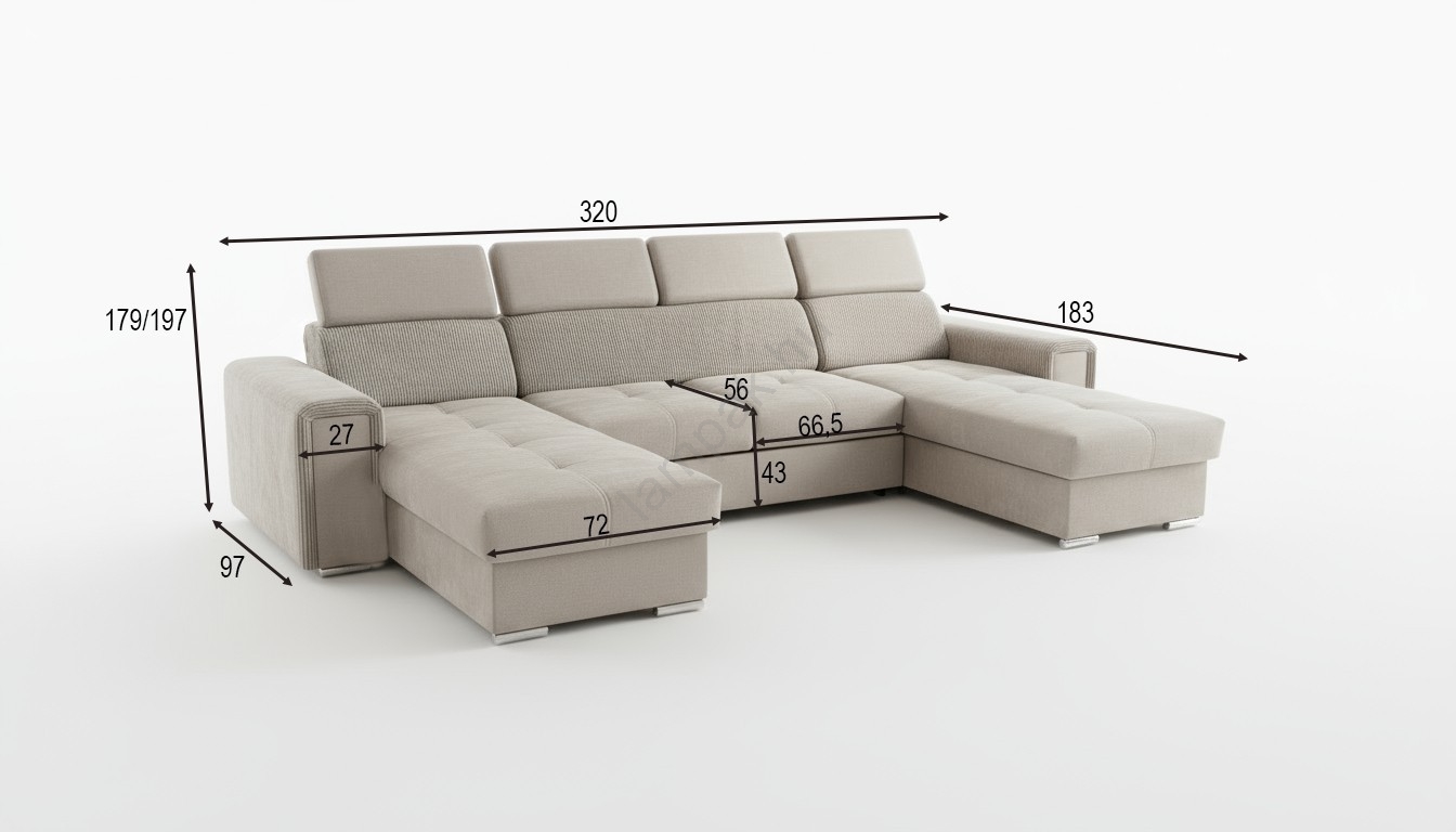 • Tágas U-alakú sarokülőgarnitúra kényelmet és stílusos megjelenést kínál.