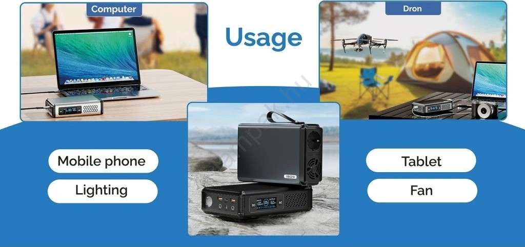 • Sokoldalúan használható a különböző kimeneteknek (USB-C, USB-A, DC jack 5521, AC230V) köszönhetően.