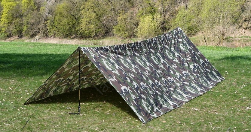 • Könnyű, erdei álcázott ponyva, 3 x 4 m-es méretekkel.
