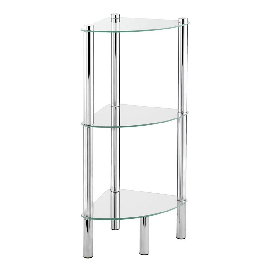 • Elegáns sarokállvány, modern megjelenésű rozsdamentes acélból és kristálytiszta üvegből.