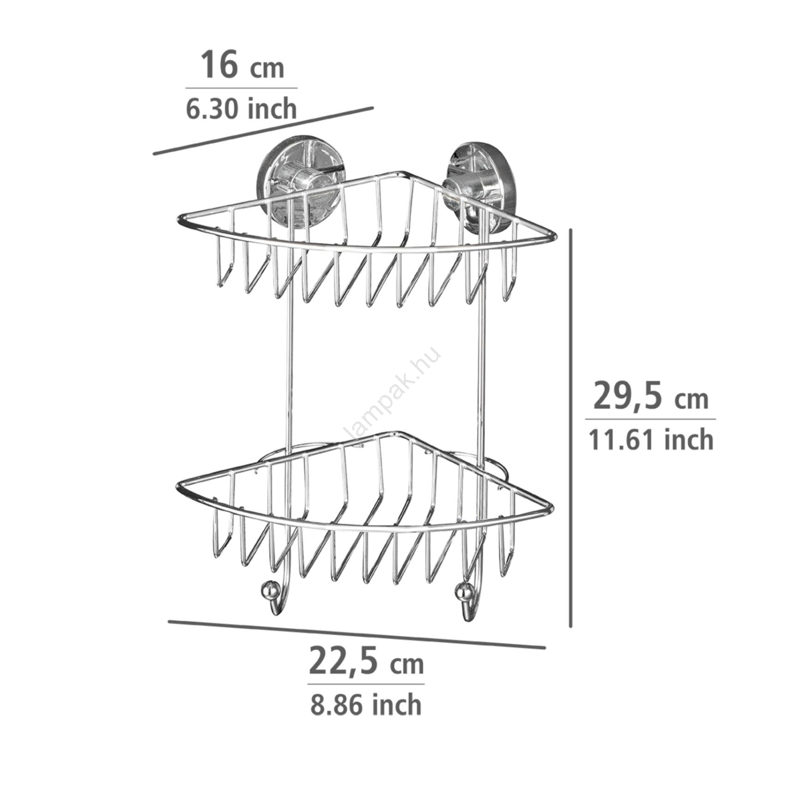 WENKO 20888100 - VACUUM-LOC kerek acél sarokpolc, 22,5 x 29,5 cm, fényes króm