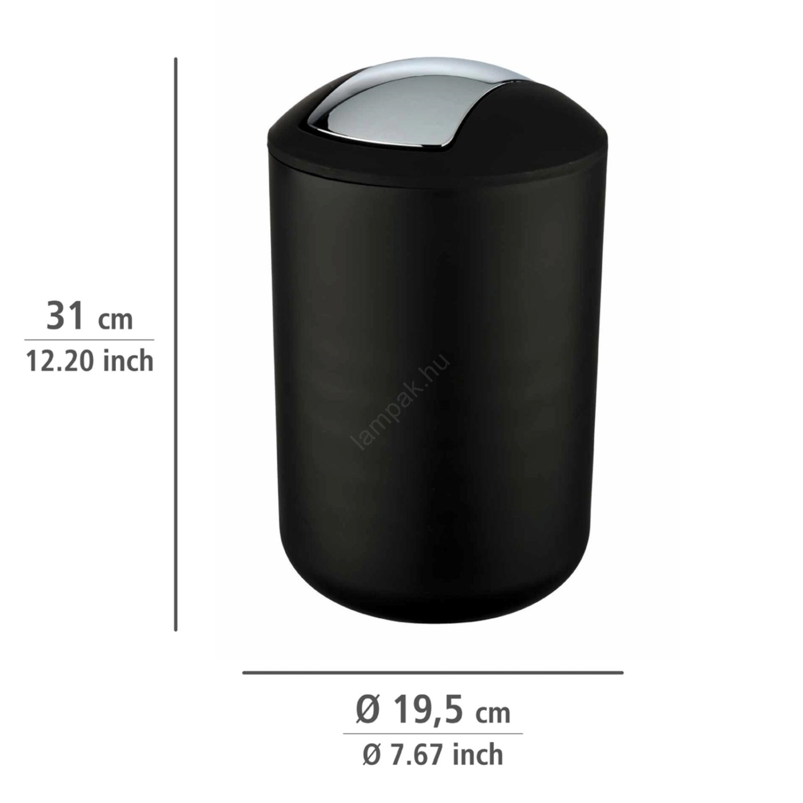• A fekete szín és a fényes krómozott fedél kombinációja modern megjelenést kölcsönöz.