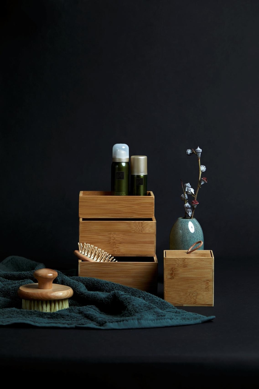 • Stílusos bambusz tálca a fürdőszoba és az otthon modern elrendezéséhez.