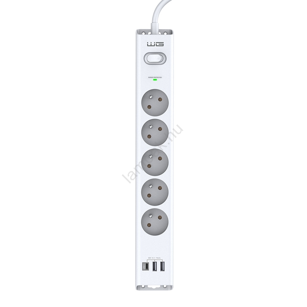 Winner Group - Túlfeszültségvédő 5 aljzattal + 2xUSB-A + 1xUSB-C fehér