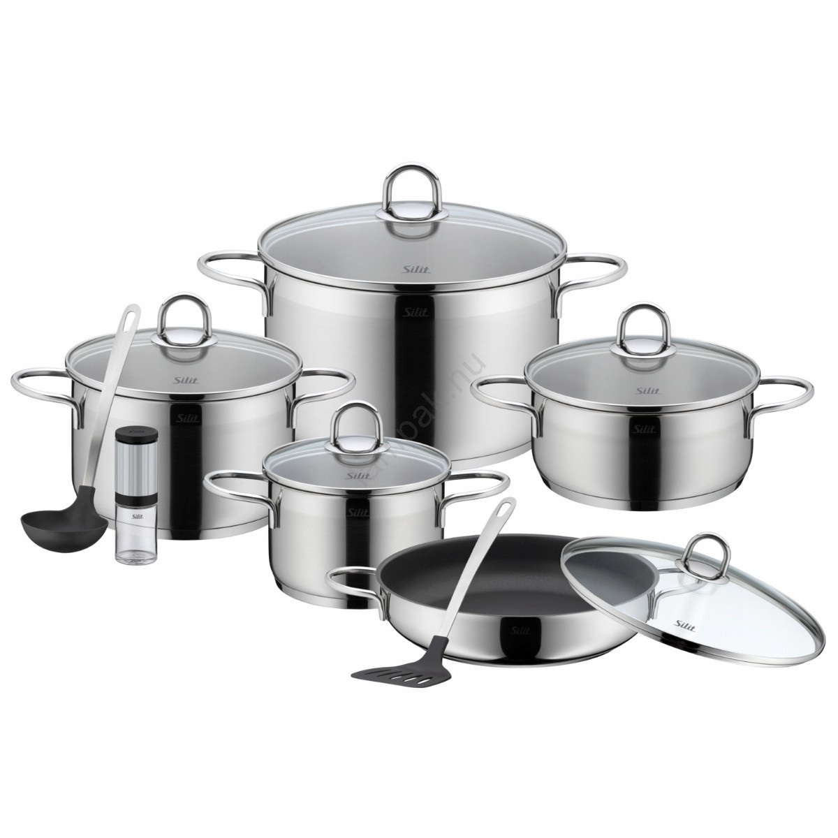 • A Silit Diamant edény- és serpenyőkészlet teljes körű felszerelést nyújt a magas színvonalú otthoni főzéshez — több, különböző fogásokhoz alkalmas darabbal.